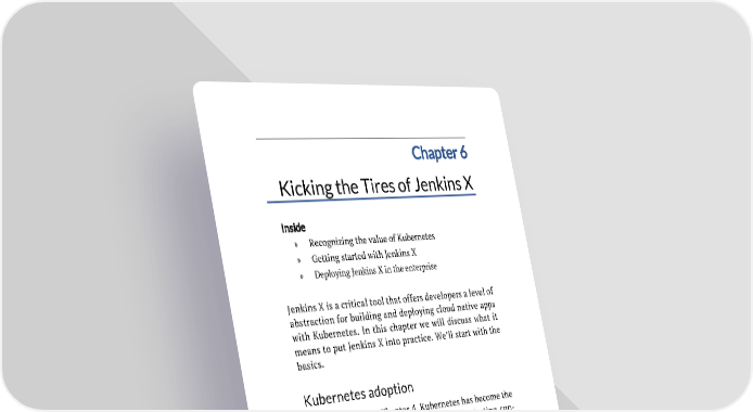 Chapter 6 Kicking the Tires of Jenkins X Inside » Recognizing the value of Kubernetes » Getting started with Jenkins X » Deploying Jenkins X in the enterprise Jenkins X is a critical tool that offers developers a level of abstraction for building and deploying cloud native apps with Kubernetes. In this chapter we will discuss what it means to put Jenkins X into practice. We’ll start with the basics. Kubernetes adoption As we discussed in Chapter 4, Kubernetes has become the de facto standard for managing and orchestrating con- tainers and is changing everything when it comes to de- veloping cloud native applications. As Kubernetes be- comes embraced by a large number of vendors and cus- tomers, there is a growing ecosystem of tools available for the environment. How does a developer know which tools to select? How does a developer bring these tools together to be able to create a project that meets the needs of their CI/CD pipeline? As we discussed in Chapter 5, Jenkins X was designed to bring together the best of breed tools into a framework to help you move quickly in developing, testing, implementing and deploying appli- cations for the cloud. 64