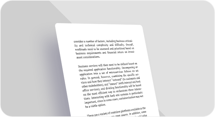 consider a number of factors, including business critical- ity and technical complexity and difficulty. Overall, workloads need to be assessed and prioritized based on business requirements and financial return on invest- ment considerations. Business services will then need to be defined based on the required application functionality. Decomposing an application into a set of microservices follows no set rules. In general, however, examining the specific ser- vices and how they interact “outward” (to customers and other stakeholders), and “inward” (with internal and back office services), and dividing functionality will be based on the most efficient way to orchestrate these interac- tions. Interacting with back end systems is particularly important, since in some cases, containerization may not be a viable option. There are a variety of container platforms available in the marketplace – some are open source. In addition, some container platforms are offered by vendors who add value in terms of ease of use and scalability. The careful exam- ination of current and future needs will play into deter- mining the right platform to use. Finally, the role of operations will change where cloud- enabled applications prevail. We’ve seen that cloud ena- blement can add complexity and pose management chal- lenges, but also create great opportunity to exploit the cloud. Kubernetes as a management and orchestration system for cloud native applications built with containers is a way to effectively get the most out of a distributed, modularized application implementation. 41