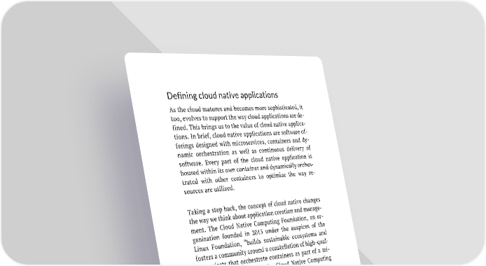 Defining cloud native applications As the cloud matures and becomes more sophisticated, it too, evolves to support the way cloud applications are de- fined. This brings us to the value of cloud native applica- tions. In brief, cloud native applications are software of- ferings designed with microservices, containers and dy- namic orchestration as well as continuous delivery of software. Every part of the cloud native application is housed within its own container and dynamically orches- trated with other containers to optimize the way re- sources are utilized. Taking a step back, the concept of cloud native changes the way we think about application creation and manage- ment. The Cloud Native Computing Foundation, an or- ganization founded in 2015 under the auspices of the Linux Foundation, “builds sustainable ecosystems and fosters a community around a constellation of high-qual- ity projects that orchestrate containers as part of a mi- croservices architecture.” The Cloud Native Computing Foundation defines cloud native as follows: ▪ Container packaged. A standard way to package applications that is resource efficient. More ap- plications can be densely packed using a standard container format. ▪ Dynamically managed. A standard way to dis- cover, deploy and scale up and down container- ized applications. ▪ Microservices oriented. This method decomposes the application into modular, independent ser- vices that interact through well-defined ser- vice contracts. 31
