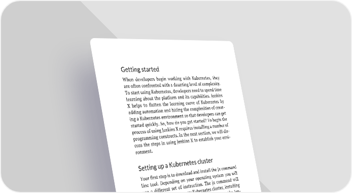 Getting started When developers begin working with Kubernetes, they are often confronted with a daunting level of complexity. To start using Kubernetes, developers need to spend time learning about the platform and its capabilities. Jenkins X helps to flatten the learning curve of Kubernetes by adding automation and hiding the complexities of creat- ing a Kubernetes environment so that developers can get started quickly. So, how do you get started? To begin the process of using Jenkins X requires installing a number of programming constructs. In the next section, we will dis- cuss the steps in using Jenkins X to establish your envi- ronment. Setting up a Kubernetes cluster Your first step is to download and install the jx command line tool. Depending on your operating system you will use a different set of instruction. The jx command will automatically create a new Kubernetes cluster, installing required local dependencies and provisions on the Jen- kins X platform. These clusters work across a variety of cloud providers environments including Amazon AWS, Microsoft Azure, Oracle Cloud, Google Cloud, as well as custom Kubernetes clusters. If you would like to see a demo of the command take a look at this link: https://jenkins-x.io/demos/create_cluster/ Creating a quickstart A quickstart provides the developer with a command line interface (CLI) for creating a Kubernetes cluster. When you want to begin creating a new application, it is sensi- ble to use a quickstart, a pre-made application rather than starting from scratch. Jenkins X includes a curated 65