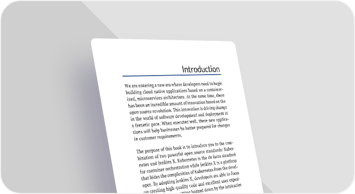 Introduction We are entering a new era where developers need to begin building cloud native applications based on a container- ized, microservices architecture. At the same time, there has been an incredible amount of innovation based on the open source revolution. This innovation is driving change in the world of software development and deployment at a frenetic pace. When executed well, these new applica- tions will help businesses be better prepared for changes in customer requirements. The purpose of this book is to introduce you to the com- bination of two powerful open source standards: Kuber- netes and Jenkins X. Kubernetes is the de facto standard for container orchestration while Jenkins X is a platform that hides the complexities of Kubernetes from the devel- oper. By adopting Jenkins X, developers are able to focus on creating high-quality code and excellent user experi- ences rather than getting bogged down by the intricacies of Kubernetes. The power of Kubernetes and Jenkins X together, is a partnership that enables organizations to leverage cloud native environments in a consistent and predictable way. To be successful in a cloud dominated world requires that teams of business and technical leaders collaborate to create meaningful solutions to make customers success- ful. This collaboration results in new business models that can change the way business is revolutionized. Why read this book? This book gives you a roadmap to understanding what Ku- bernetes is and the ecosystem of open source tools that sur- round it. We will put this important platform in context with ix