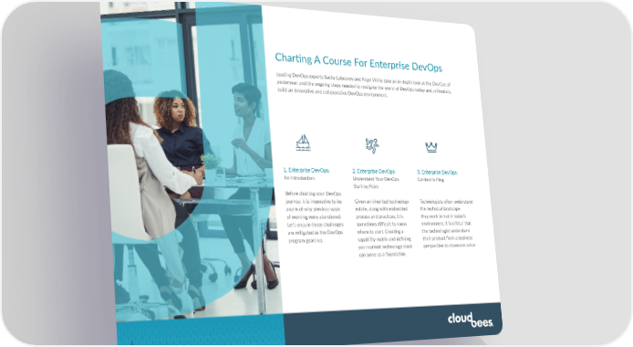Charting A Course For Enterprise DevOps Leading DevOps experts Sacha Labourey and Nigel Willie take an in-depth look at the DevOps of yesteryear, and the ongoing steps needed to navigate the world of DevOps today and, ultimately, build an innovative and collaborative DevOps environment. 1. Enterprise DevOps: 2. Enterprise DevOps: 3. Enterprise DevOps: An Introduction Understand Your DevOps Context is King Starting Point Before charting your DevOps journey, it is imperative to be Given an inherited technology Technologists often understand aware of why previous ways estate, along with embedded the technical landscape of working were abandoned. process and practices, it is they work in but in today’s Let’s ensure those challenges sometimes difficult to know environment, it is critical that are mitigated as the DevOps where to start. Creating a the technologist understand program gears up. capability matrix and defining their product from a business your current technology stack perspective to showcase value. can serve as a foundation. 1.